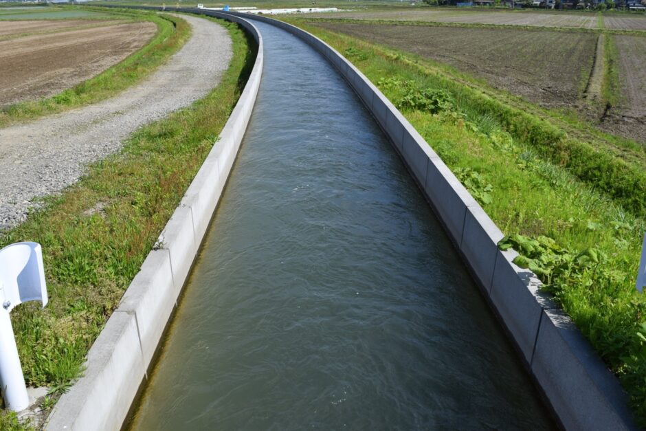 農業用水路などで複数方向に水を分ける場合、「断面積を同じにすれば流量も同じになる」と直感的に考えてしまいがちです。しかし実際の流れでは、水路断面内の流速分布は一様ではなく、単純に幅や開口を等分しただけでは流量を等しく分けることはできません。これは、先に述べた粗度による抵抗の違いや流速分布の偏りが原因です。